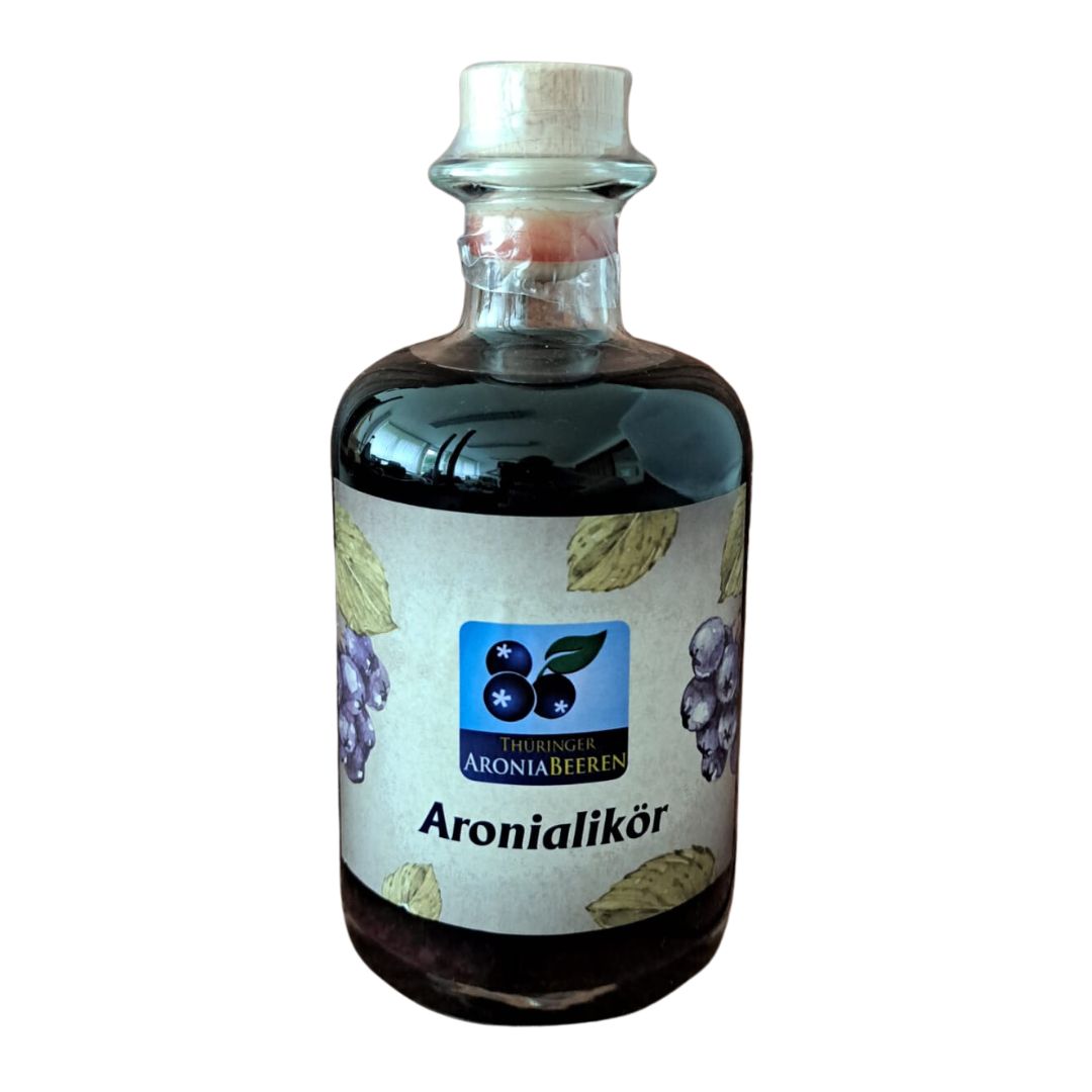 Likör aus frisch gepressten Aroniabeeren der Thüringer Freilandpilze GmbH.