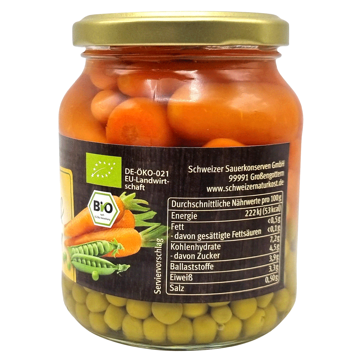 Zarte Erbsen mit Möhrchen, schonend verarbeitet