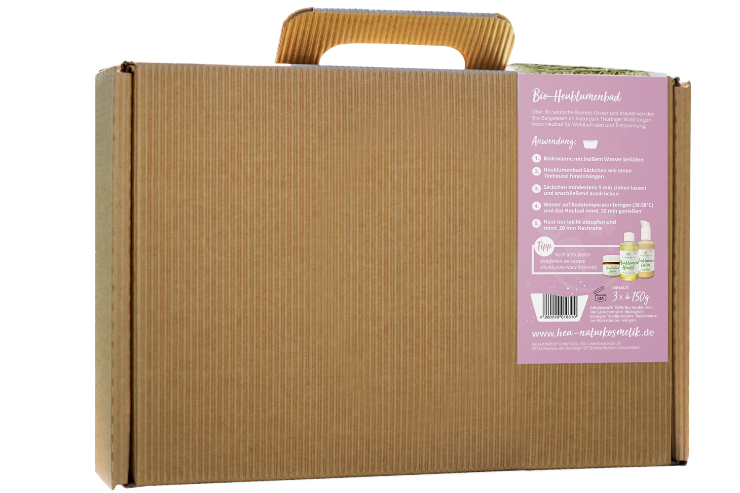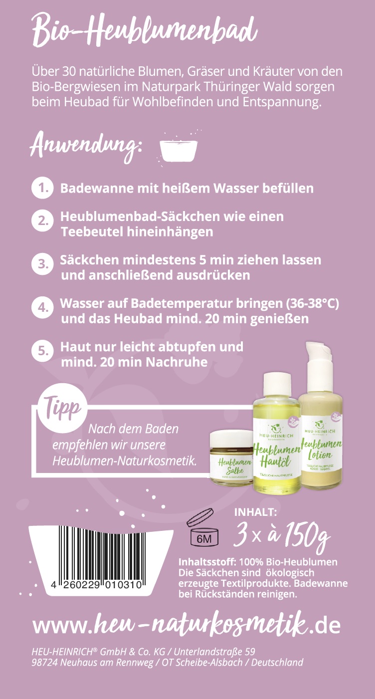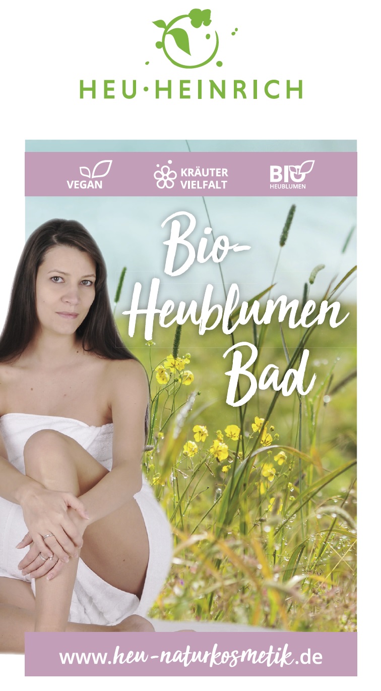 Wohltuender Badezusatz aus 100 % Bio-Kräuterheu von Heu-Heinrich.