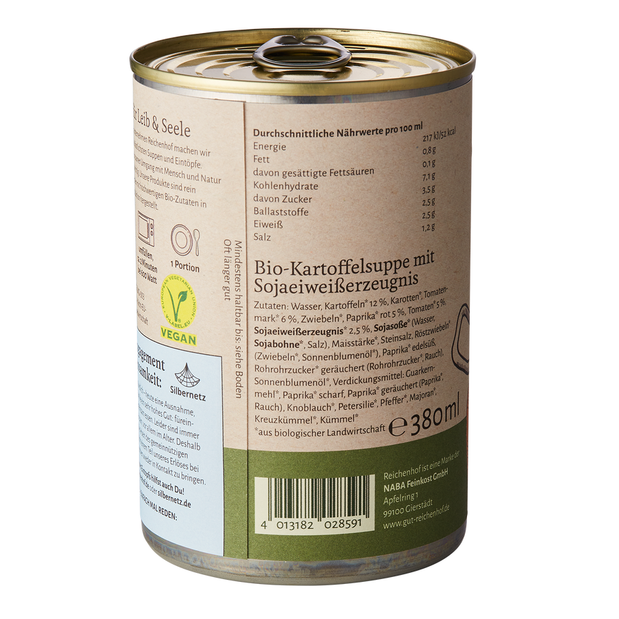 Wasser, Kartoffeln* 12 %, Karotten*, Tomatenmark* 6 %, Zwiebeln*,