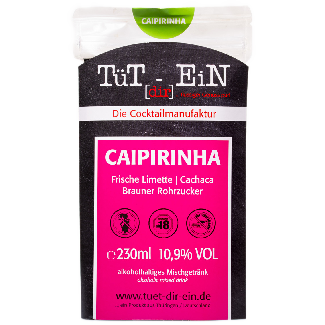 Der Tüt[dir]EiN Caipirinha Cocktail ist ein Mixgetränk aus Thoquino Cachaca mit Limettensaft und braunem Rohrzucker.