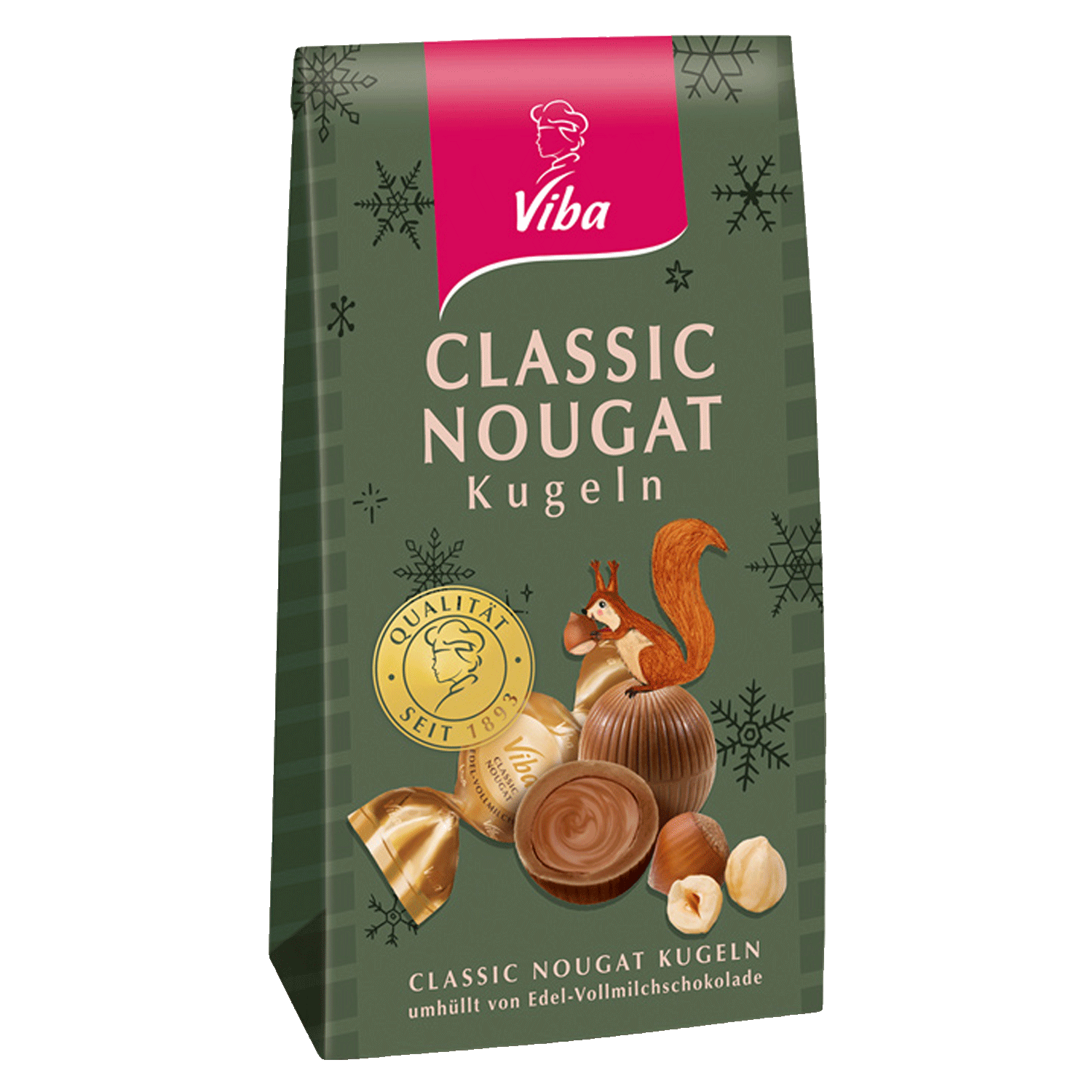 Kugelrunder Genuss, natürlich chic verpackt! Die Viba Classic-Nougat-Kugeln sind cremig gefüllt und von knackiger Edelvollmilch-Schokolade umhüllt. Im modern gestalteten Weihnachtsbeutel sind 7 Kugeln à 15 g zum Selbernaschen an einem gemütlichen Adventsabend, zum Anbieten und Teilen oder zum Verschenken enthalten. Die einzeln verpackten Schoko-Kugeln mit Nougatfüllung sind Kugel für Kugel ein Genuss!
