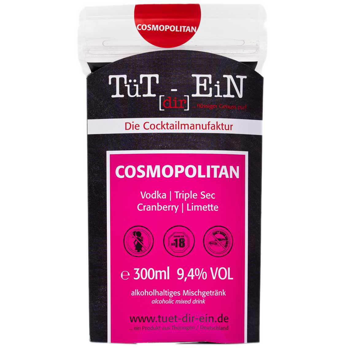 Der Tüt[dir]EiN Cosmopolitan Cocktail ist ein Mixgetränk aus Vodka und Orangenlikör, verfeinert mit Cranberry- und Limettensaft sowie der zusätzlichen Süße von Cranberry-Sirup.