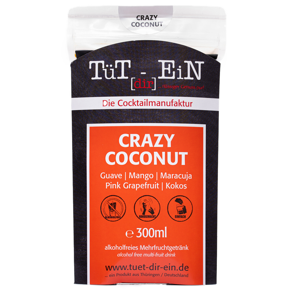 Der alkoholfreie Crazy Coconut von Tüt[dir]EiN ist eine Mischung aus Guaven-, Mango- und Maracujasaft, verfeinert mit dem Sirup der Kokosnuss und der Pampelmuse.