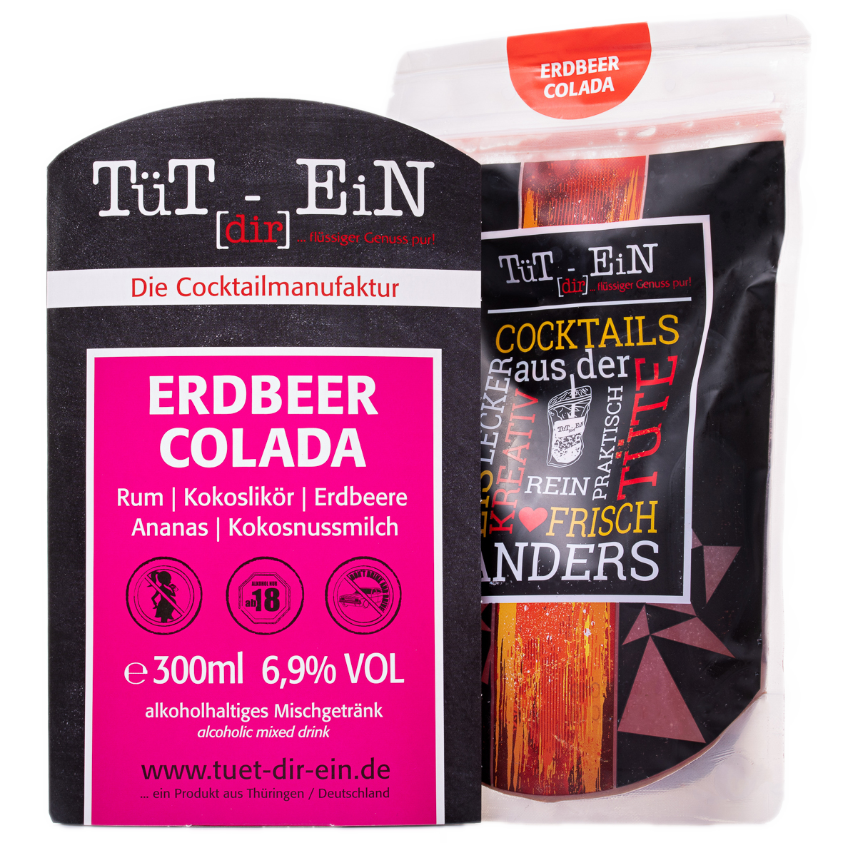 Die Cocktails von Tüt[dir]EiN sind alle handgemacht. Verwendet werden ausschließlich qualitativ hochwertige und frische Zutaten namhafter Marken, von 100% Säften, über Sirup und Spirituosen der Premiumkategorie. Gemixt wird nach eigener Rezeptur, mit konstant bleibender Qualität. Qualität die der Kunde schmeckt!