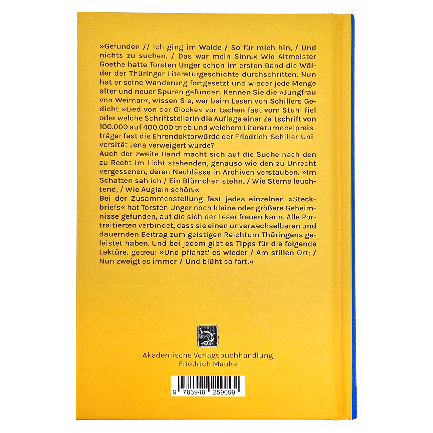 50 weitere Autorinnen und Autoren stellt Torsten Unger im zweiten Band seines persönlichen Kompendiums zur Thüringer Literatur vor. Wieder sind es neben bekannten Künstlerinnen und Künstlern wie Wieland, die Gebrüder Schlegel oder Fritz Reuter auch solche, die in Vergessenheit geraten sind aber es verdienen, erinnert zu werden.