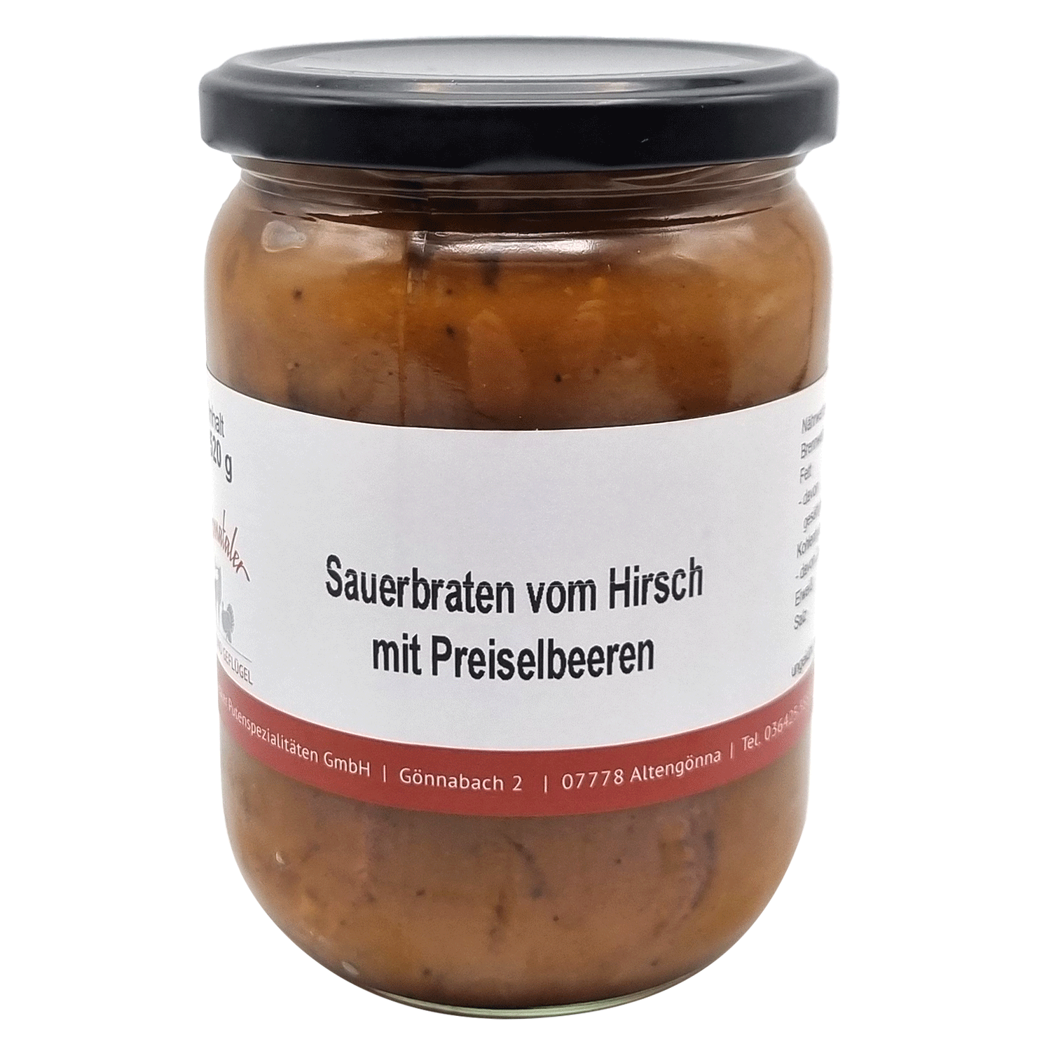 Sauerbraten vom Hirsch mit Preiselbeeren- im Glas
