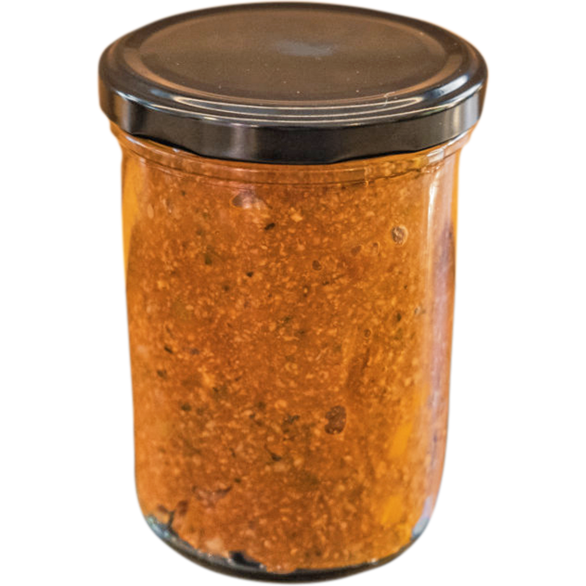 Kaninchenbraten mit Schweinespeck in Soße - im Glas