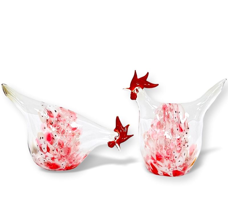 Glashühner mit Glasgranulat 2 Stück