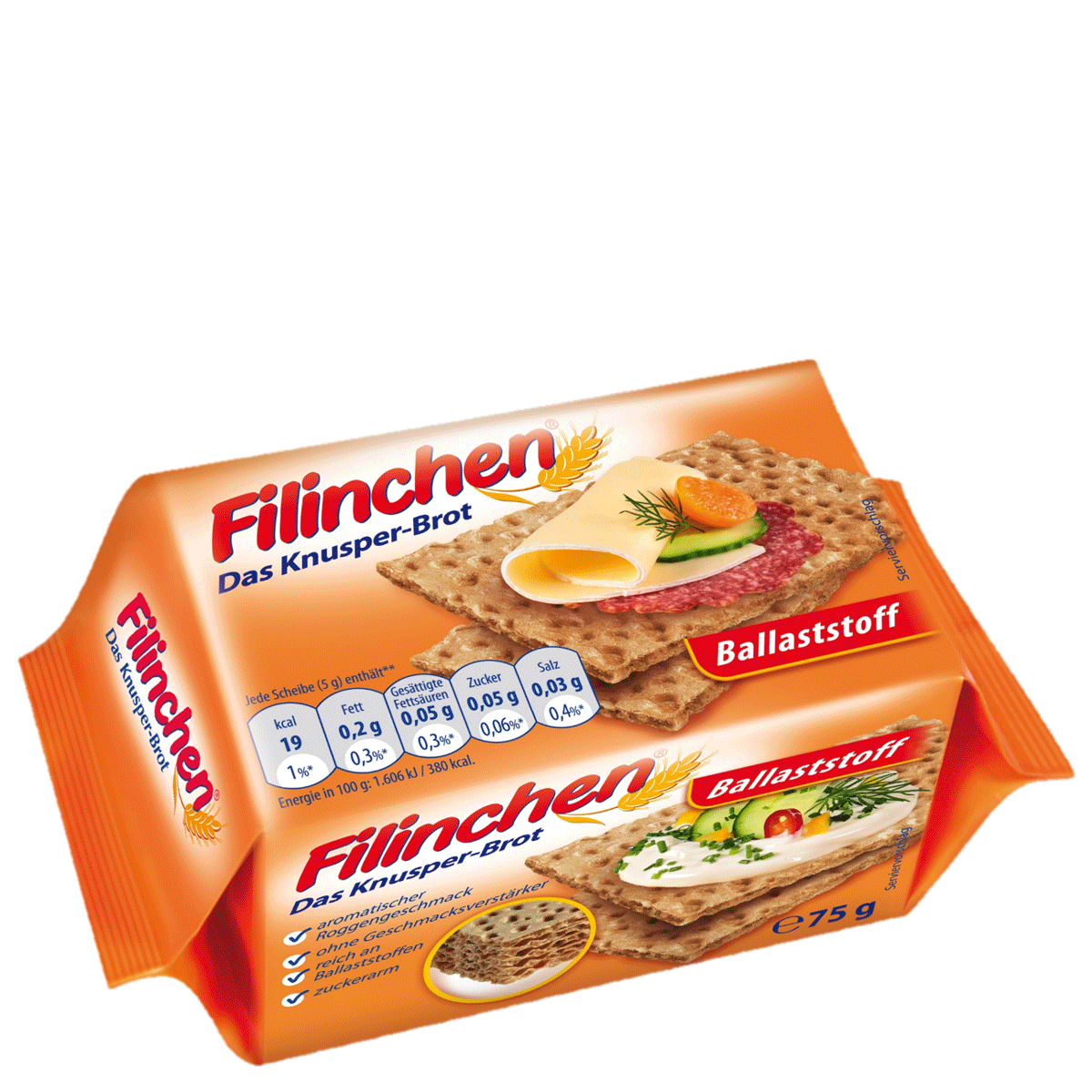 Voll im Trend – mit Ballaststoffen angereichert und ohne Zusatz von Zucker ist Filinchen Ballaststoff ideal für eine kalorienbewusste Ernährung. Pur oder mit Quark und Kräutern belegt – Filinchen Ballaststoff bietet herzhaften Geschmack.
