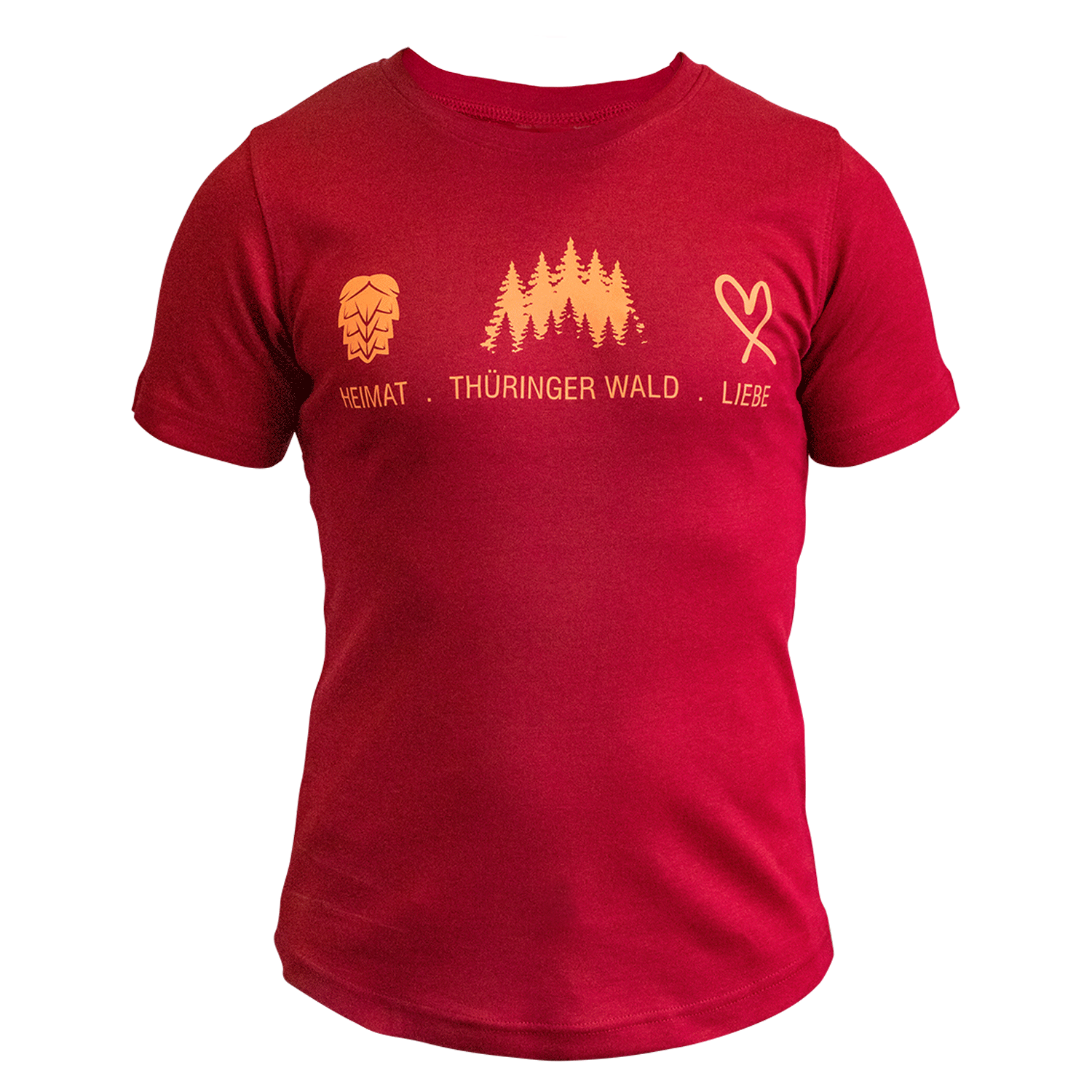 T-Shirt Frauen - bordeaux | Aufdruck Heimat. Thüringer Wald. Liebe - koralle