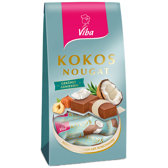 Fühlen Sie sich wie im Urlaub! Die Viba Neuheit in diesem Jahr entführt Sie geschmacklich in einen karibischen Sommer. Palmen, Strand, Meer und zart schmelzender Viba Kokos Nougat. Was braucht man mehr zum Relaxen und Genießen!?Für alle die, die Abwechslung in Ihrem Nougatgeschmacksbild lieben.