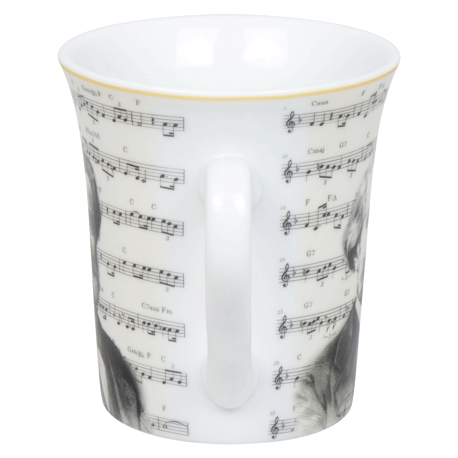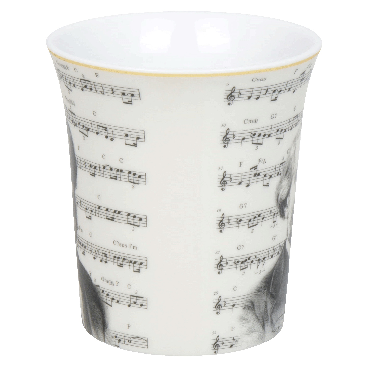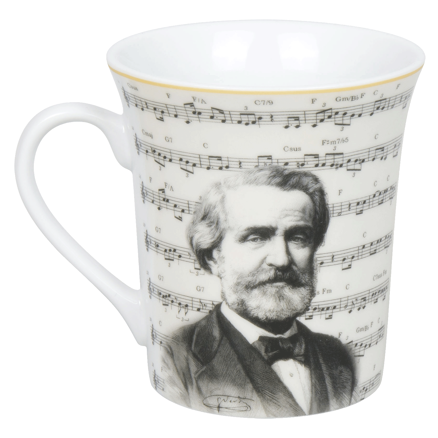 Erlebe deinen musikalischen Genuss! Dieser exklusive Becher ist ein Tribut an Giuseppe Verdi, den Meister der Musik der Romantik. Mit einem kunstvollen Porträt Verdis und einer Notenpartitur im Hintergrund bringt er klassische Eleganz in deinen Alltag. Der edle Goldrand verleiht dem Design eine noble Note und macht ihn zum perfekten Begleiter für Liebhaber klassischer Musik.