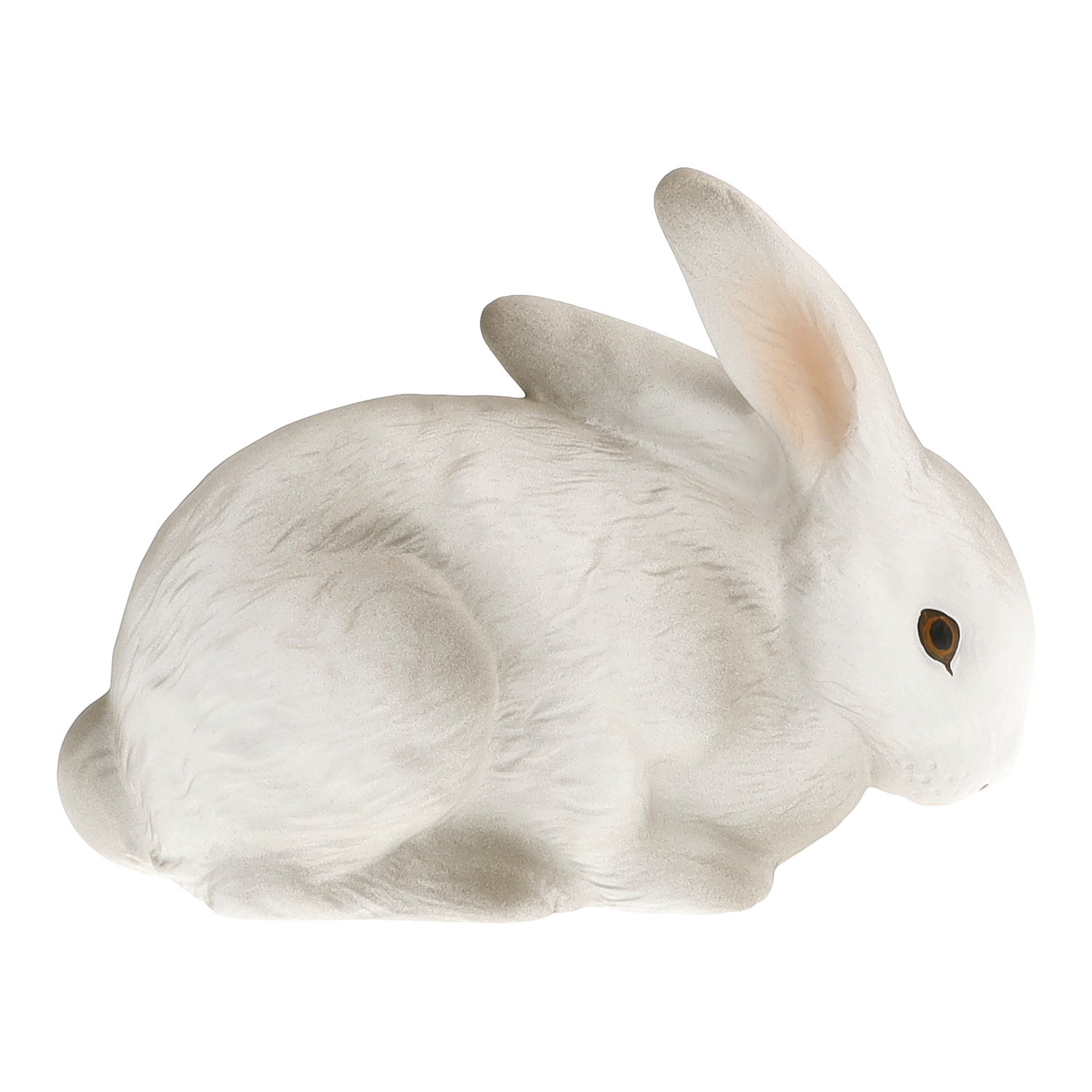 Im Jahre 1935 entwickelte unser Modelleur einige neue Osterhasenmodelle. Im Unterschied zu den kurz nach der Jahrhundertwende geschaffenen Hasen zeichnen sich diese Artikel durch ein liebliches und freundliches Aussehen aus. Vorbild waren nämlich nicht mehr die eher spartanisch wirkenden Feldhasen sondern die rundlichen Formen der Kaninchen. Unser Kuschelhase ist ein Schmuck für Ihren Ostertisch und - in ein Nestchen aus Ostergras oder Moos gesetzt - begeistert er bestimmt Ihre ganze Familie.