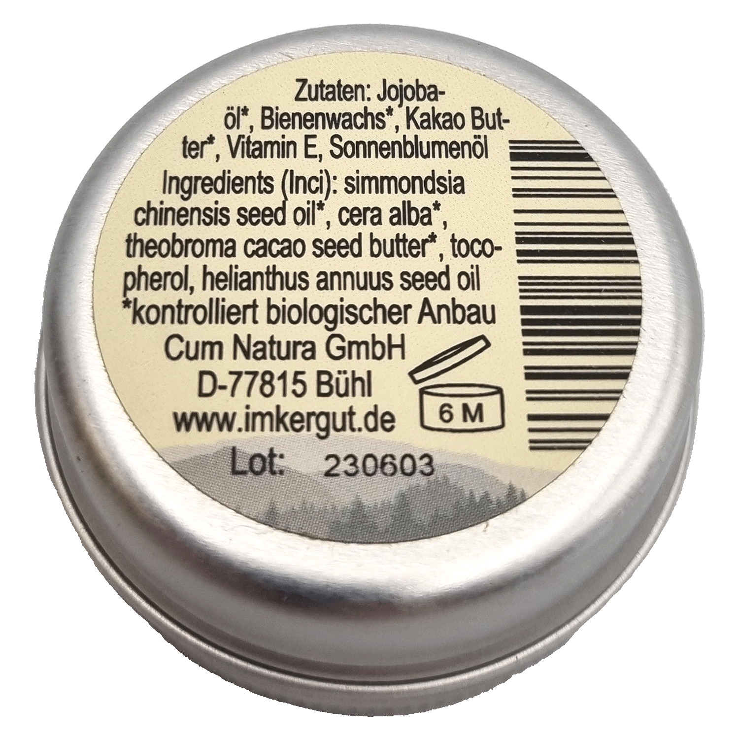 Inhaltsstoffe: Jojobaöl*, Sheabutter*, Bienenwachs*, Kakaobutter*, Vitamin E *kontrolliert biologischer Anbau
