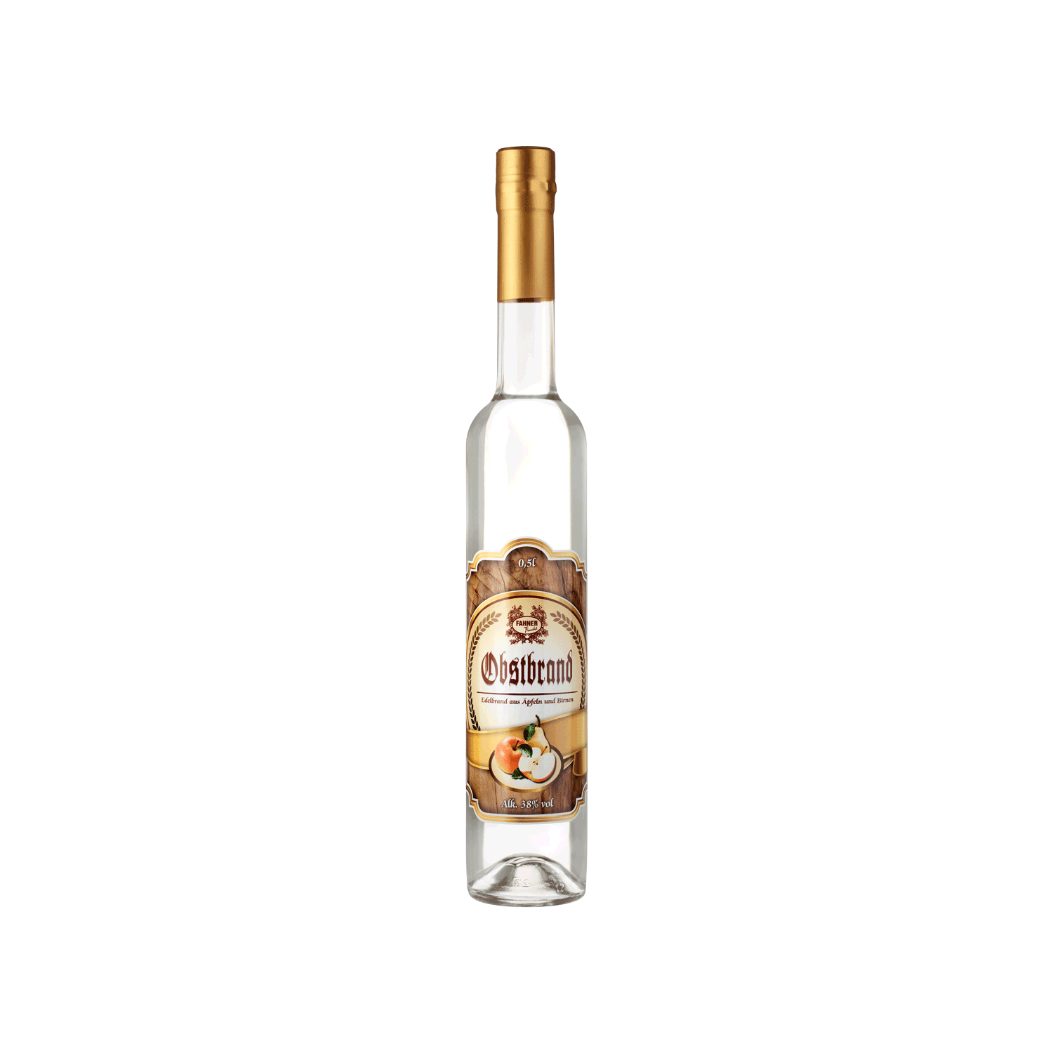 Obstbrand Fahner Edelbrand verfeinert mit Obstbrandwein aus Äpfeln und Birnen der Obstbrand hat eine klare Farbe. Obstbrand mit einer leichten schwachen Frucht Note, im Abgang arttypsicher brenned. Der flüssige Brand mit dem Geruch Arttypisch, schwach ausgeprägtes Birnen und Kirscharoma.