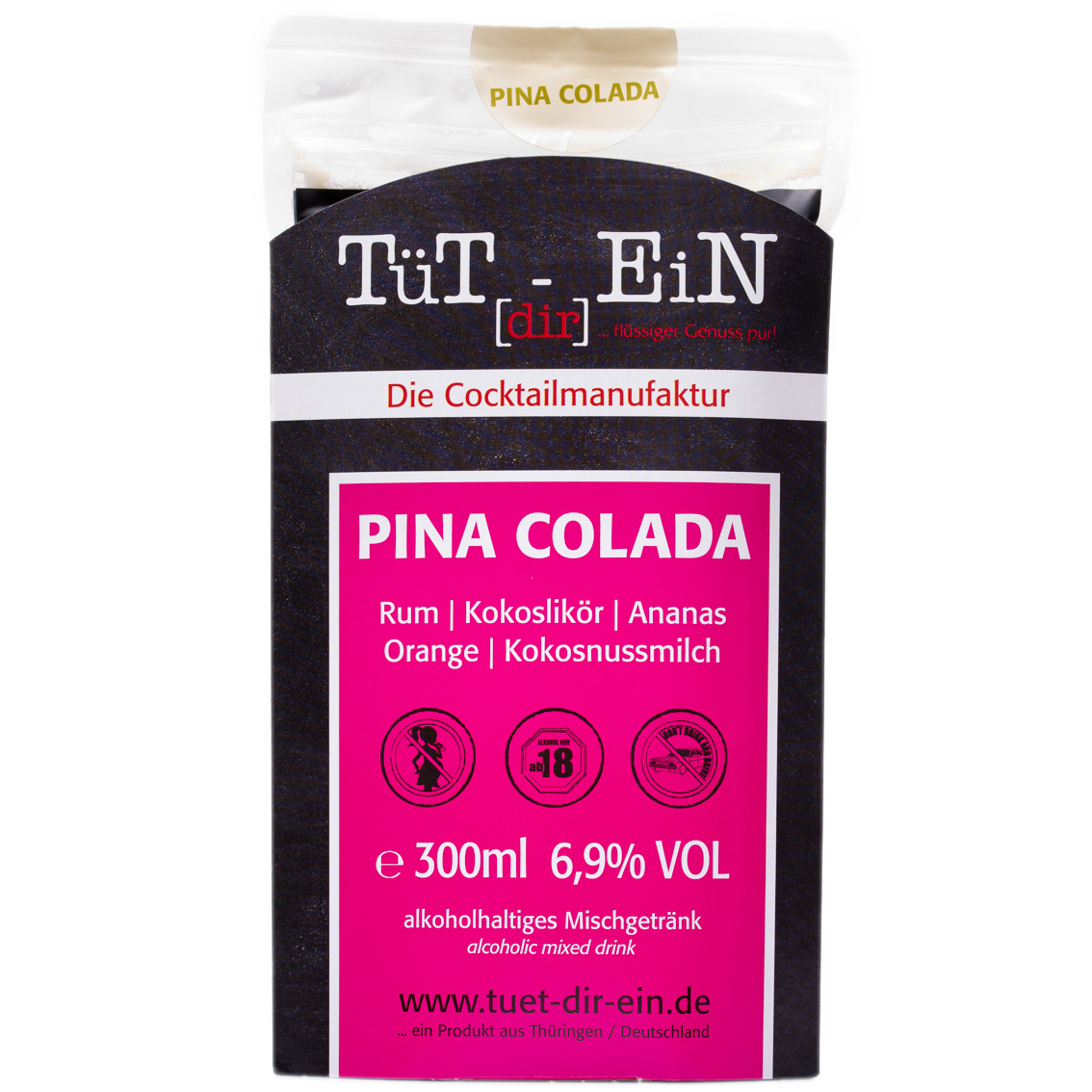 Der Tüt[dir]EiN Pina Colada Cocktail ist ein Mixgetränk aus Havana Club und Kokosnuss-Likör mit Ananas- und Orangensaft, Kokosnussmilch und einem Hauch Kokosnuss-Sirup.