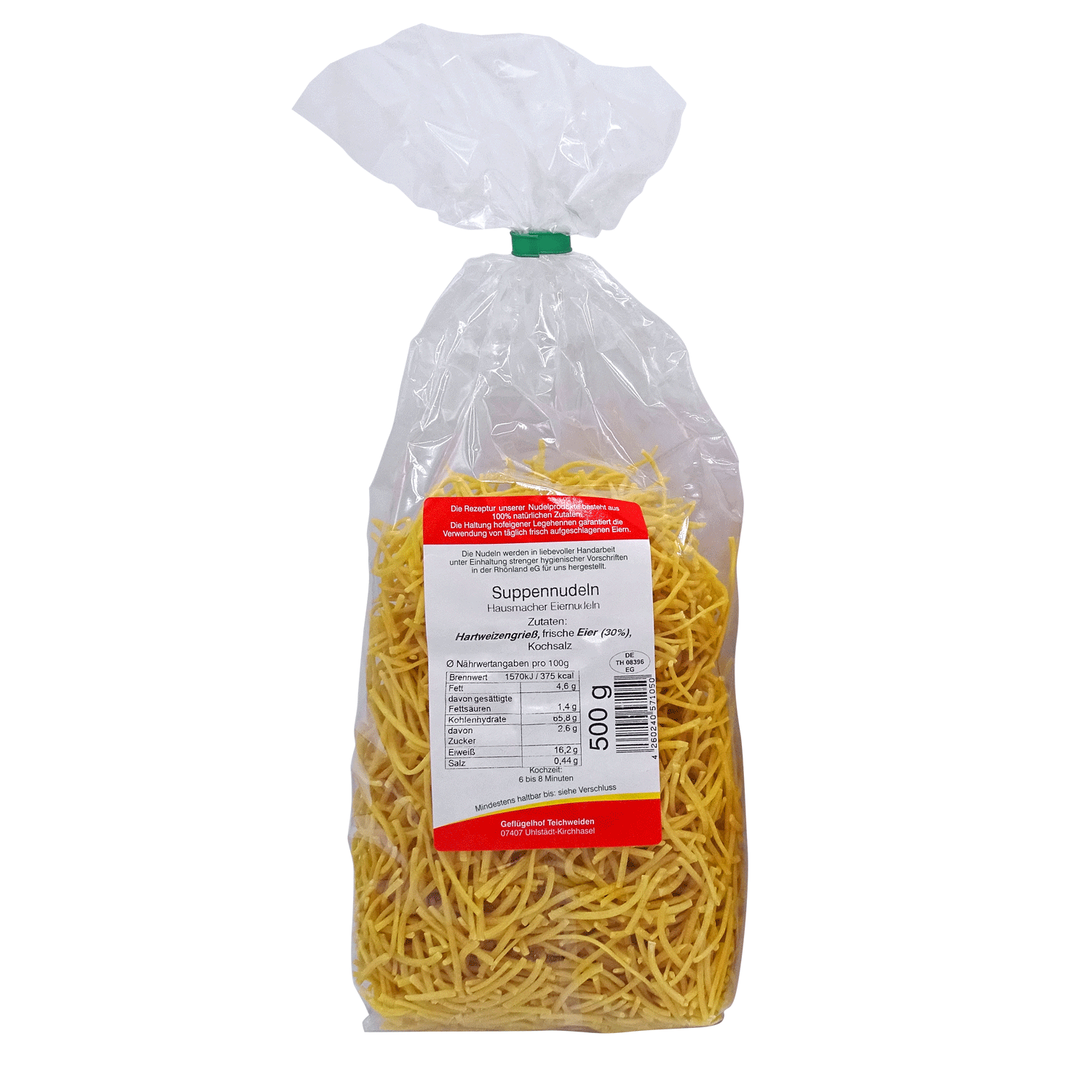 Thüringer hausgemachte Eiernudeln in Muschelform mit Eiern aus hofeigener artgerechter Haltung. Die Nudeln werden in liebevoller Handarbeit unter Einhaltung strenger hygienischer Vorschriften hergestellt.