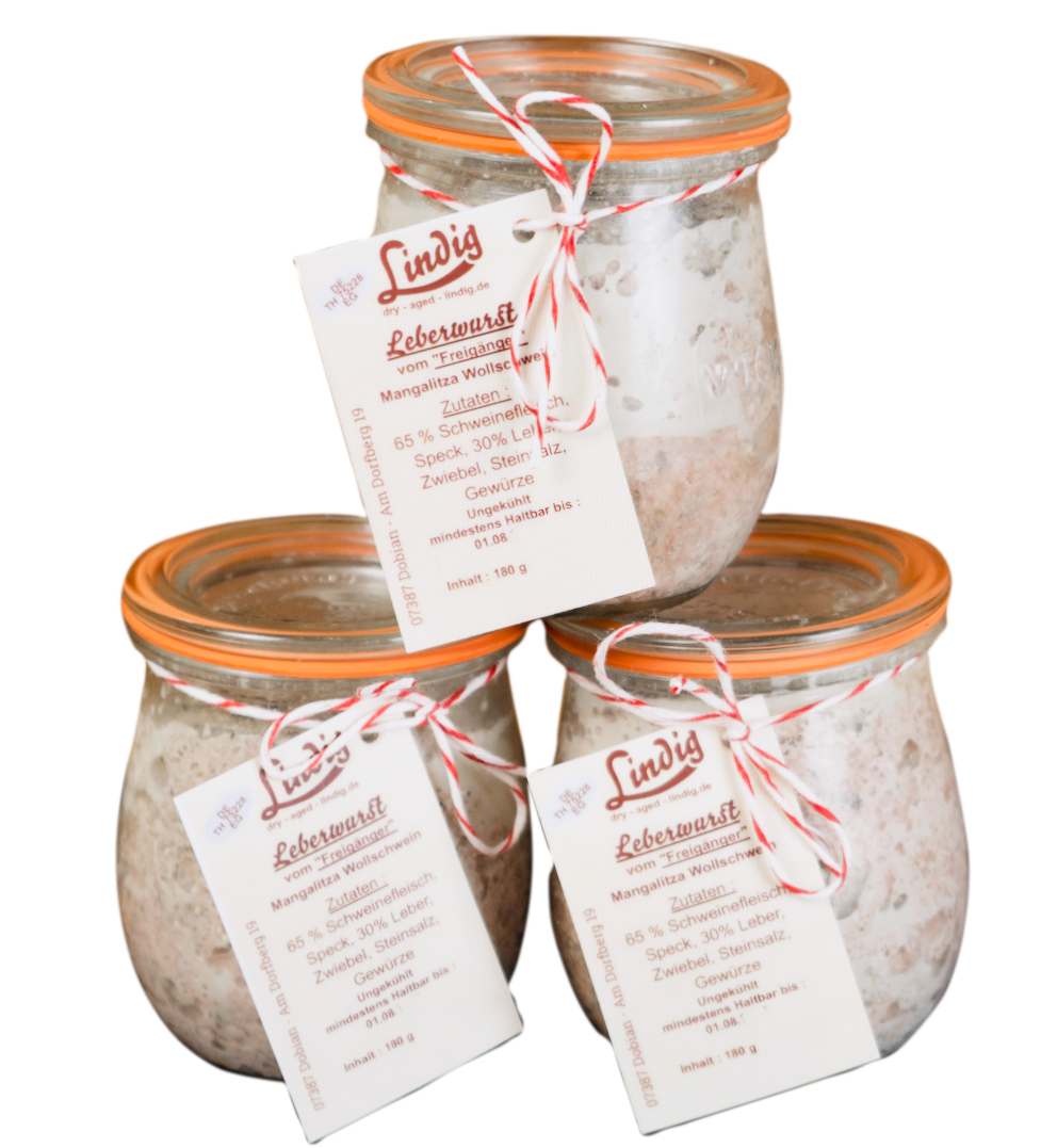 Zutaten: 65% Schweinefleisch, Speck, 30% Schweineleber, Zwiebel, Steinsalz, Gewürze