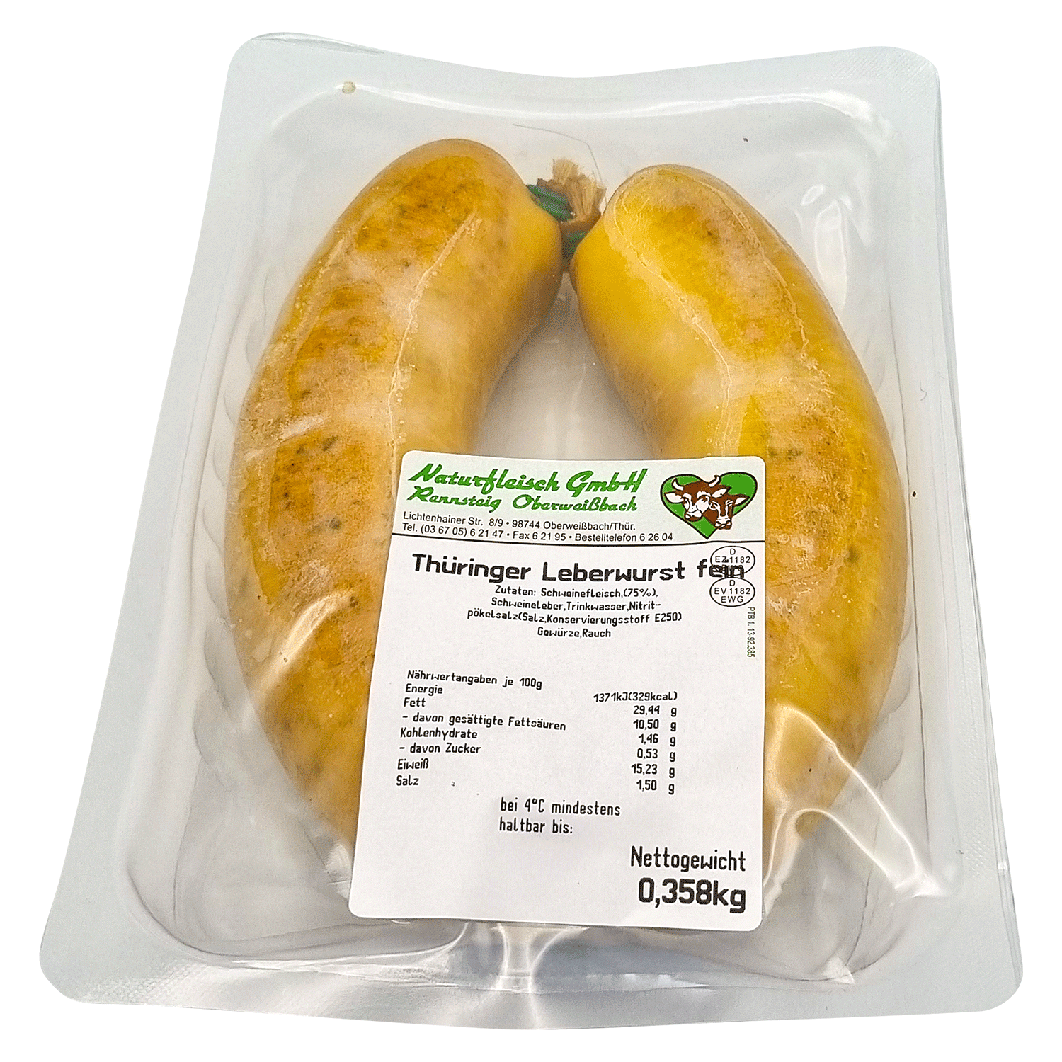 Die Original Thüringer Leberwurst der Naturfleischerei Oberweißbach wird nach einem traditionellen Rezept aus bestem Schweinefleisch hergestellt. Die frischen Zutaten werden schonend gegart, im Wolf zerkleinert und pikant gewürzt.